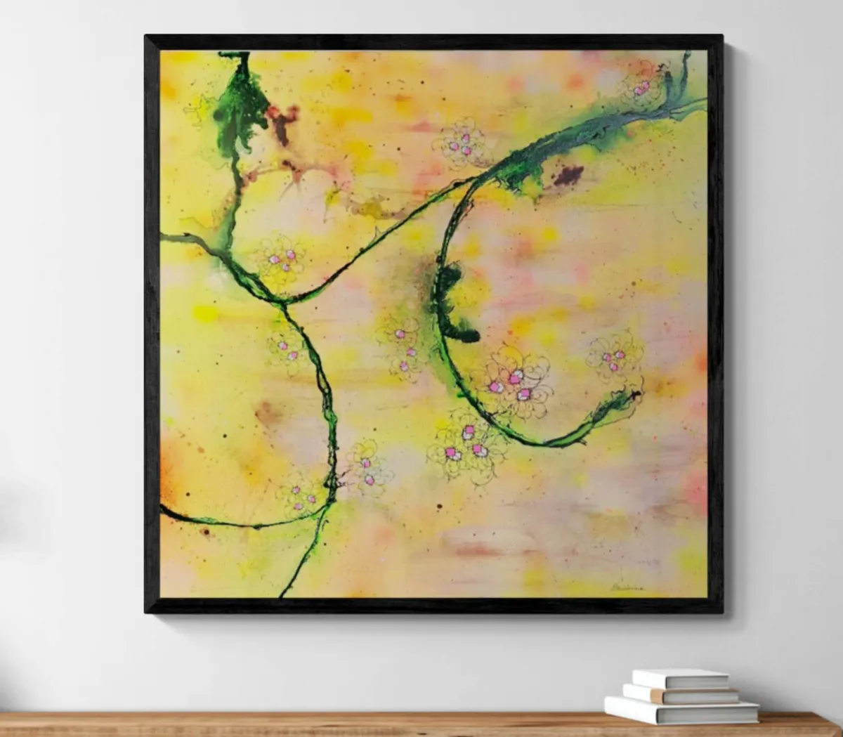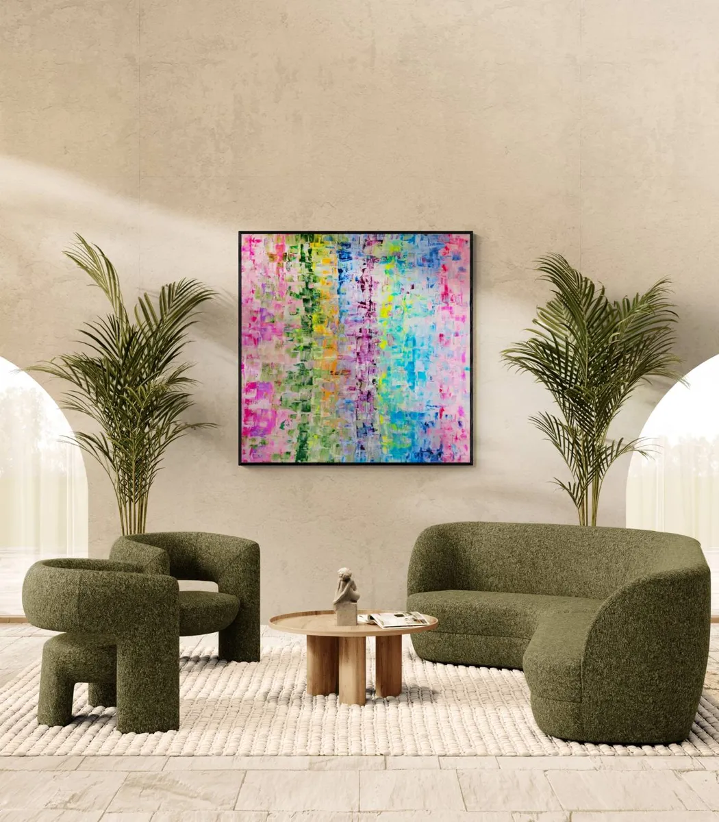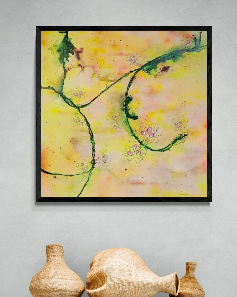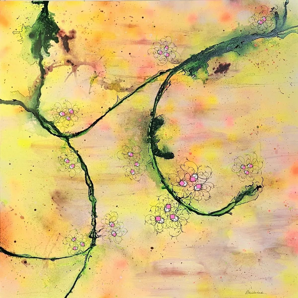 Enchanted abstract garden. Geometric flowers. Vibrant colors.