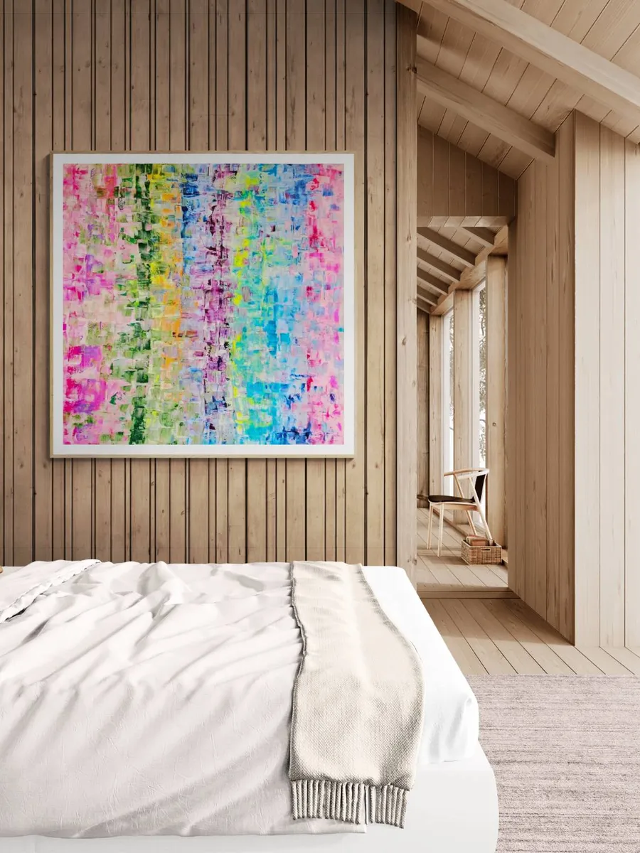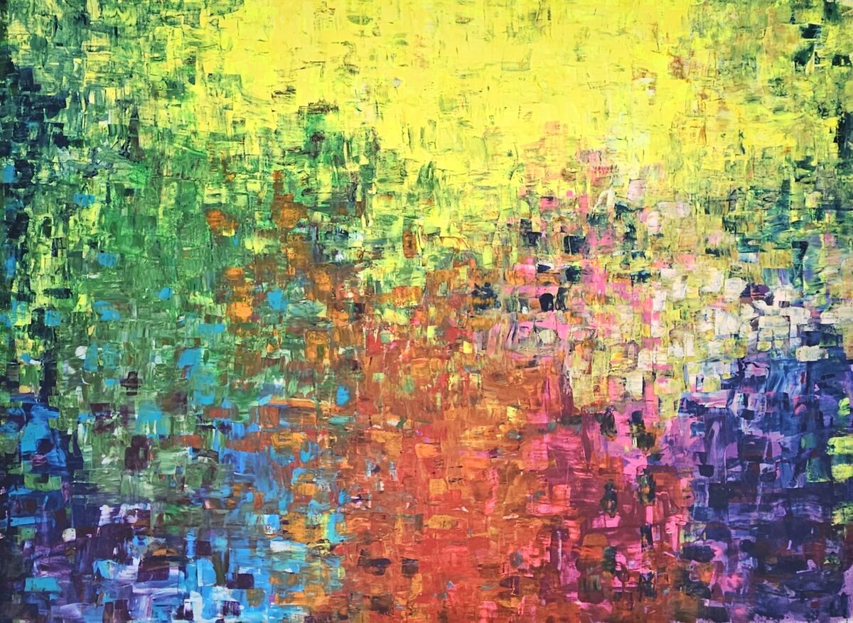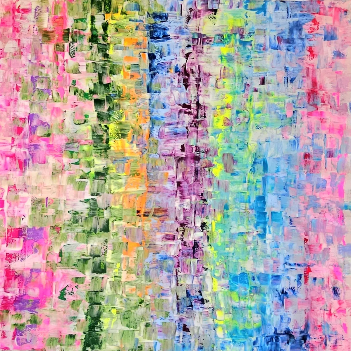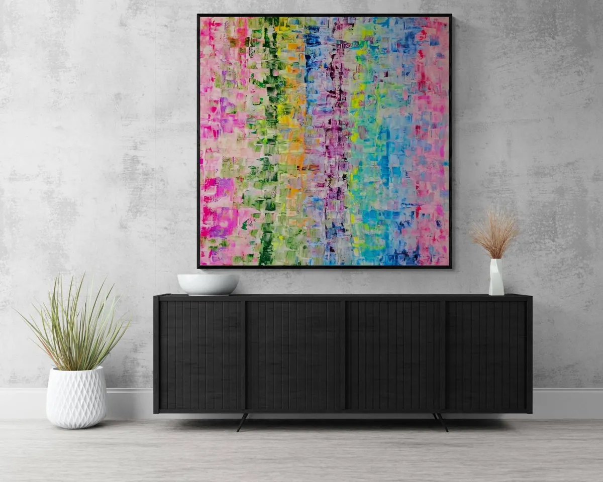 Enchanted abstract garden. Geometric flowers. Vibrant colors.