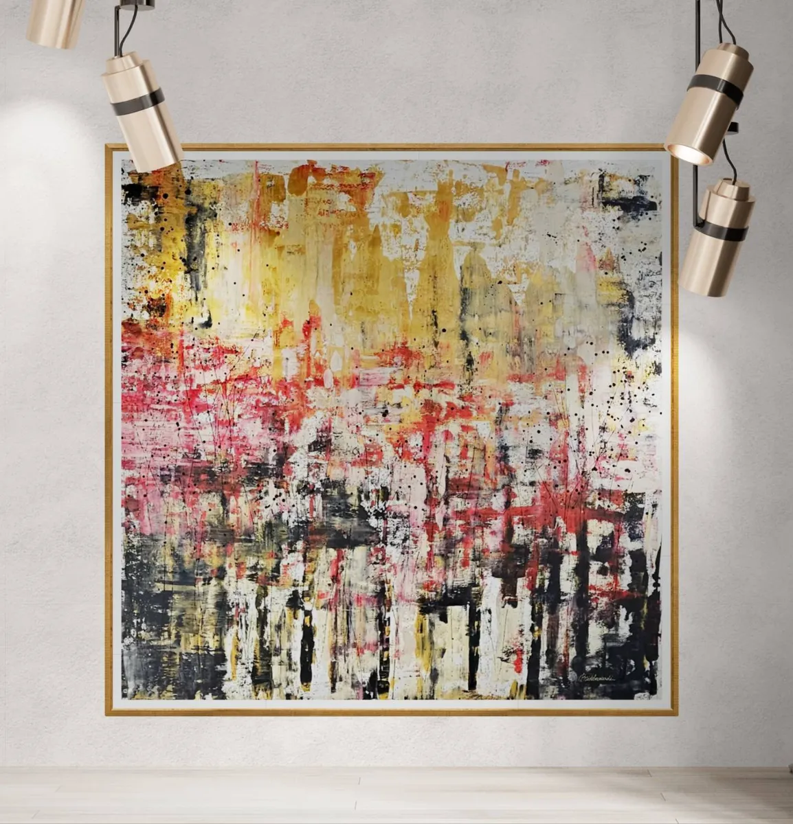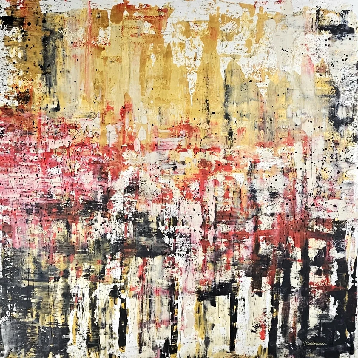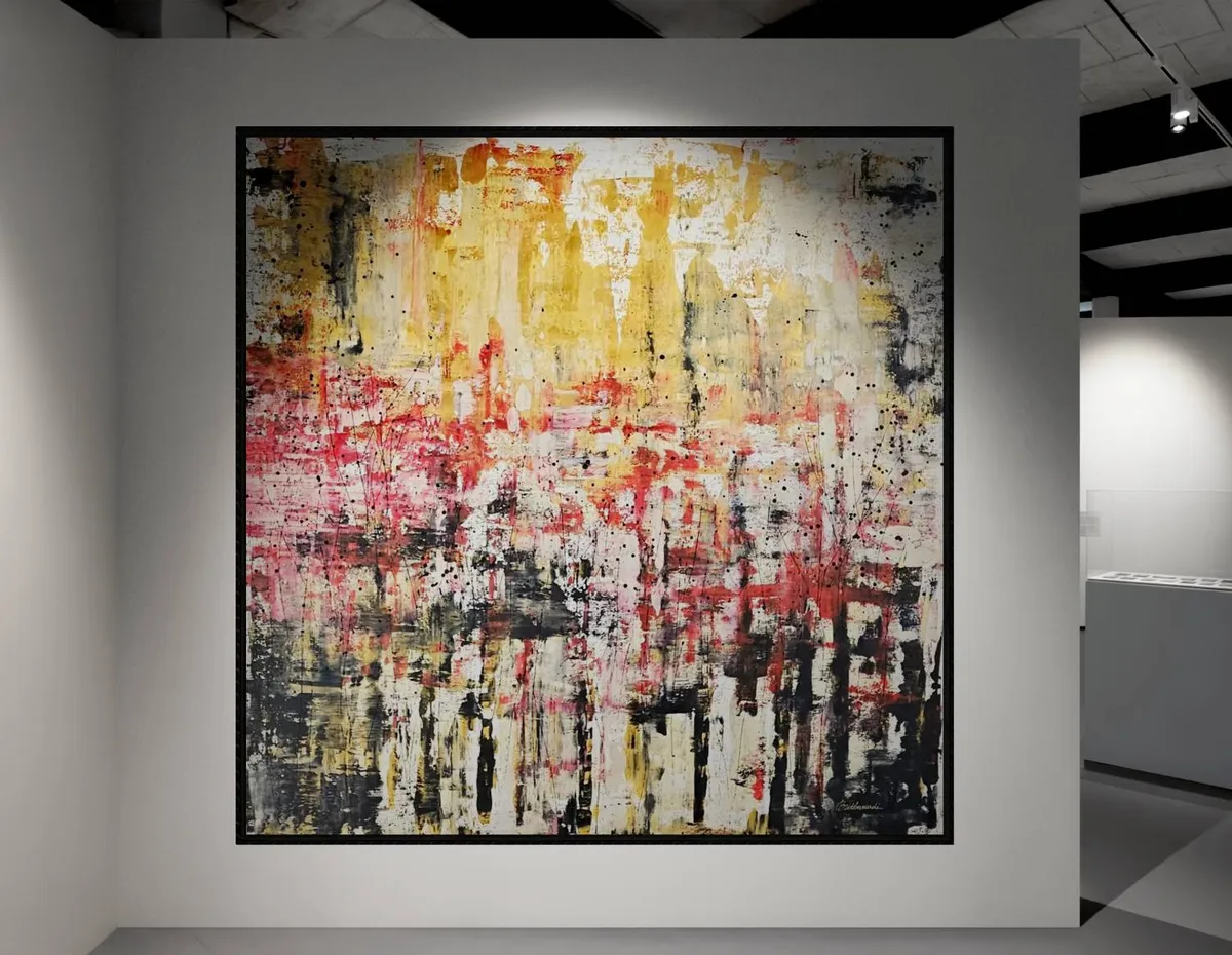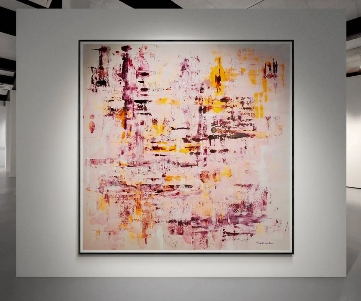 Œuvre unique très grand format, XXL, Acrylique sur toile épaisse 150x150cm, 2025 Mes tableaux sont peints à la main dans un format XXL, particulièrement majestueux par sa taille. Mes toiles font l'objet d'expositions nationales (France) et internationales (Italie, Espagne, Royaume Uni, Autriche), et mes toiles ont été retenues lors de l'exposition FINE ART CANNES Festival 2026. L'œuvre est un original, UNIQUE sur toile professionnelle. Peintures acryliques de première qualité, lumineuses et très finement pigmentées. Chaque tableau est peint au delà des dimensions affichées pour permettre une mise sur châssis sans cadre, si vous le souhaitez. Ainsi, les côtés visibles du châssis sont recouverts de peinture. Les couleurs sont au cœur de mon travail, et l'isotropie (#anisotropie) au centre de ma technique. Les toiles sont peintes et séchées plusieurs heures à l'extérieur, à la lumière naturelle, ce qui rend leur éclat unique, et incomparable à tout autre. Installée dans le le sud de la France, les contraintes climatiques extérieures sont plus clémentes mais imparfaites. Ainsi, mes productions sont mesurées en quantité, et chaque œuvre bénéficie de tout mon soin et attention. Chaque tableau est réalisé dans un bain de lumière naturelle, de couleurs, d'émotions, et de musique, le tout en pleine nature, et en toute saison. Ma vision est profondément concentrée sur notre perception des couleurs. Afin de leur donner une naissance émotionnelle, mes efforts se portent sur la structure, le mouvement, le geste, l'harmonie. Ces perceptions intérieures et émotions jaillissent de façon naturelle, tout en étant inévitablement contrôlées par la main.